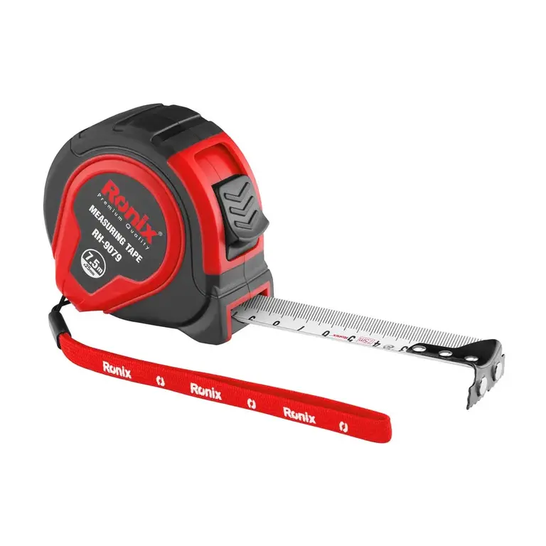 بدنه متر RH-9079 رونیکس دارای طراحی ارگونومیک بوده و از جنس پلاستیک باکیفیت TPR وABS است که موجب کاربری آسان و مقاومت این محصول در برابر ضربه میشود. قلاب آهنربایی در این محصول برای سهولت کاربری تعبیه شده است.
