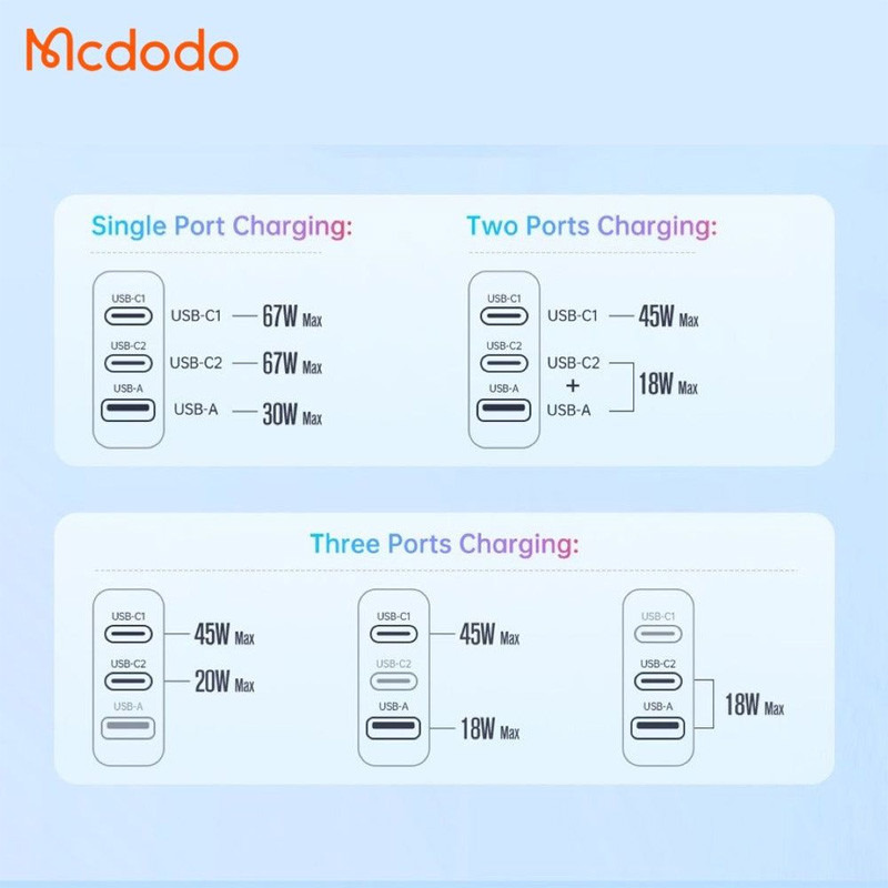کلگی فست شارژ Mcdodo CH-150 GAN 5 Mini 3Port 5A QC4.0 PD 67W