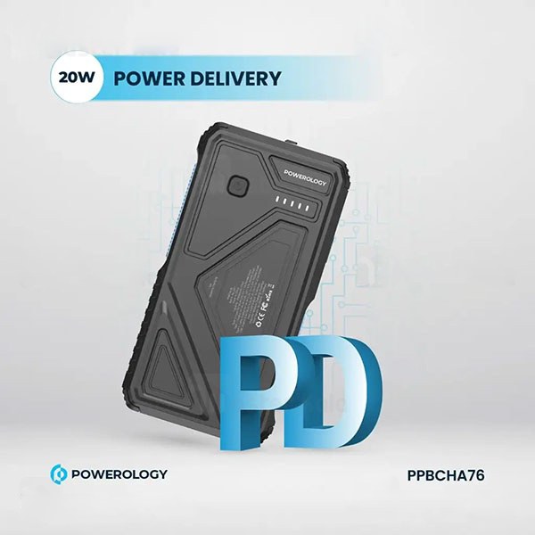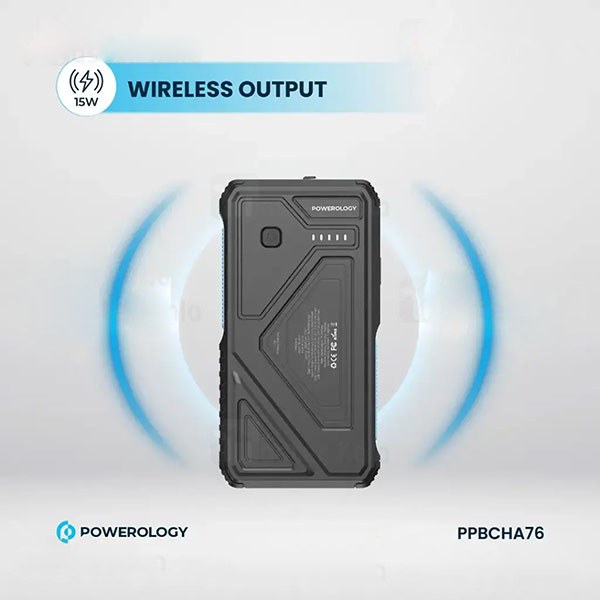 پاوربانک Powerology با پشتیبانی از شارژ سریع PD 20W و USB-A 22.5W میتواند دستگاههای شما را از 0% تا 65% تنها در 35 دقیقه شارژ کند. این ویژگی به شما این امکان را میدهد که حتی در کمترین زمان، دستگاههای خود را آماده به کار کنید. همچنین این پاوربانک از خروجی وایرلس 15 وات بهره میبرد که امکان شارژ بیسیم و راحت را برای گوشیهایی که از این فناوری پشتیبانی میکنند، فراهم میکند.