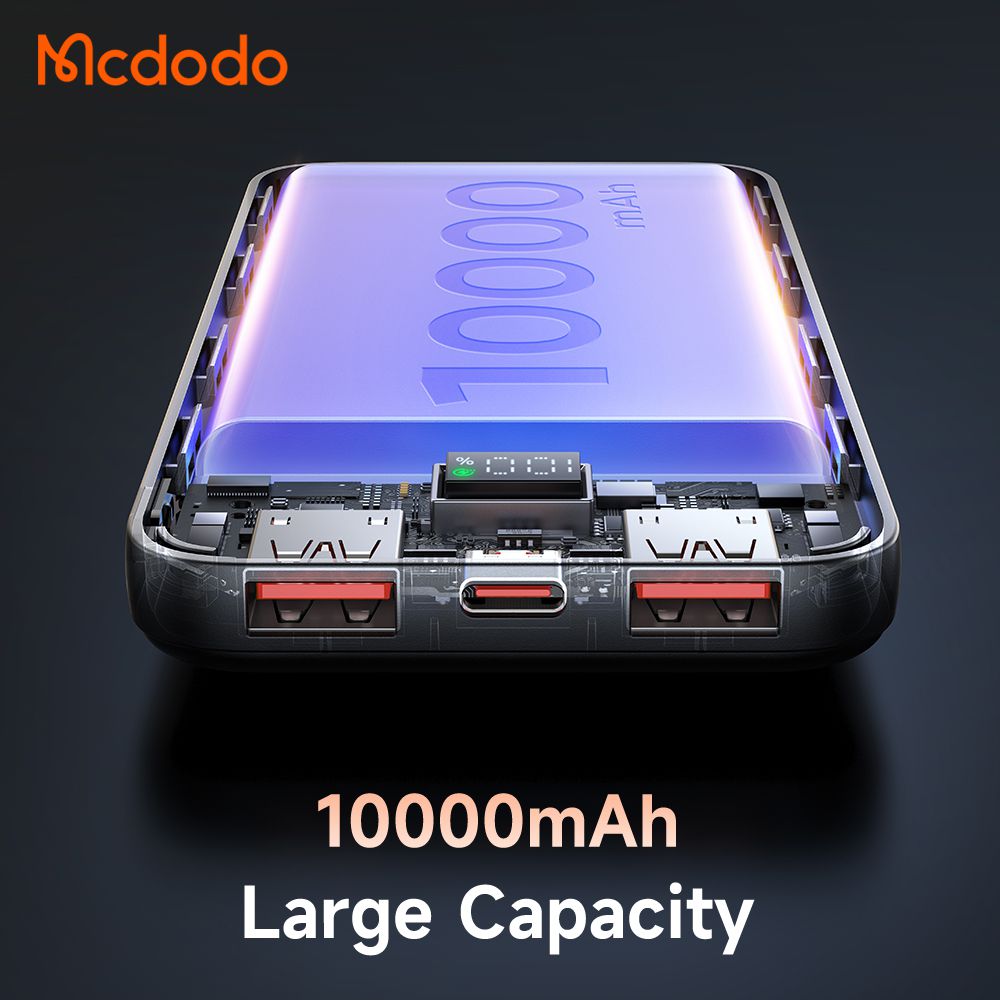 ظرفیت واقعی پاوربانک مک دودو Mcdodo MC-4220 برابر 10000 میلی آمپر بسته به ولتاژ خروجی دستگاههای شما حدودا 6000 میلی آمپر ساعت خواهد بود.