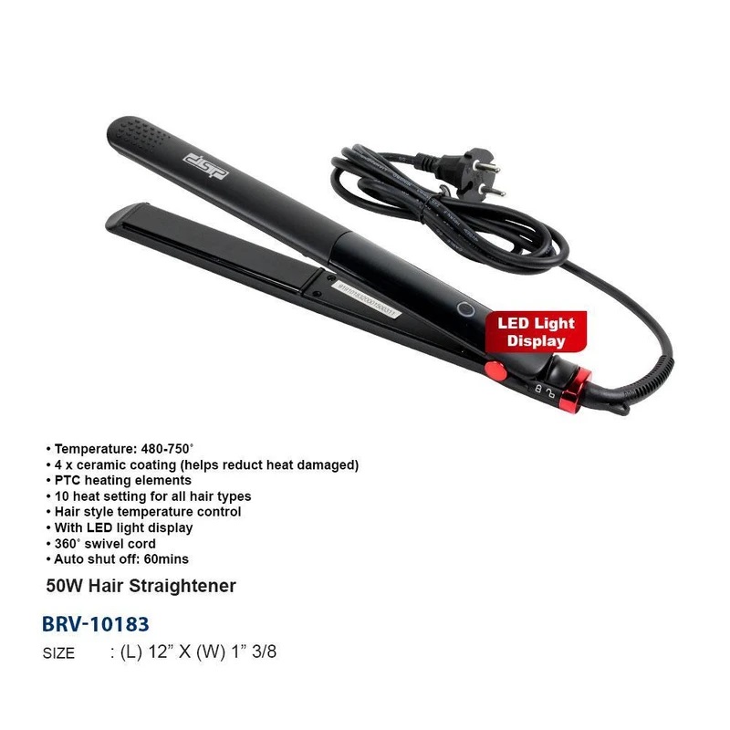اتو مو اتو مو دی اس پی 10183 دارای صفحات سرامیک با عرض 26 میلیمتر و حداکثر دمای 230 درجهی سانتیگراد است. سرامیک باعث پخش یکنواخت دما در همهی قسمتهای صفحات میشود و از آسیب دیدن موها در اثر بالا رفتن بیشازحد دما جلوگیری میکند. تورمالین نیز منبع طبیعی یون است و با تولید یونهای منفی از وز شدگی مو کم کرده و موجب درخشندگی و لطافت بیشتر موها میشود. دمای صفحات اتو مو را میتوان توسط دکمههای مثبت و منفی روی بدنه تنظیم کرد. 6 دمای قابل تنظیم از 130 تا 230 درجهی سانتیگراد وجود دارد. دمای تنظیمشده توسط یکی از LED های روی دستهی اتو مو نشان داده میشود. به کمک سیستم گرمایش سریعی که المنت حرارتی سشوار دارد، در مدتزمان 30 ثانیه دمای صفحات به دمای تنظیمشده میرسند و به کمک قابلیت کراتینه که دارد، باعث میشود موها صافتر، درخشانتر و سالمتر به نظر برسند و وز شدگی موها کمتر شود. سیم برق اتو مو 1.8 متر طول داشته و در محل اتصال به بدنه حالت چرخشی دارد. قابلیت چرخش سیم ضمن راحتتر کردن کار با اتو مو، از گره خوردن و فرسودهشدن سیم جلوگیری میکند. برای حمل و نگهداری آسانتر اتو مو یک کیف پارچهای همراه آن ارائه شده است. بهطور خلاصه دارای صفحات سرامیک با عرض 26 میلیمتر، 6 دمای قابل تنظیم از 130 تا 230 درجهی سانتیگراد، گرم شدن سریع، نشانگرهای LED دما، سیم بلند چرخشی و کیف نگهداری بوده و با قابلیت کراتینه کردن برای صاف کردن موها انتخاب بسیار مناسبی است.