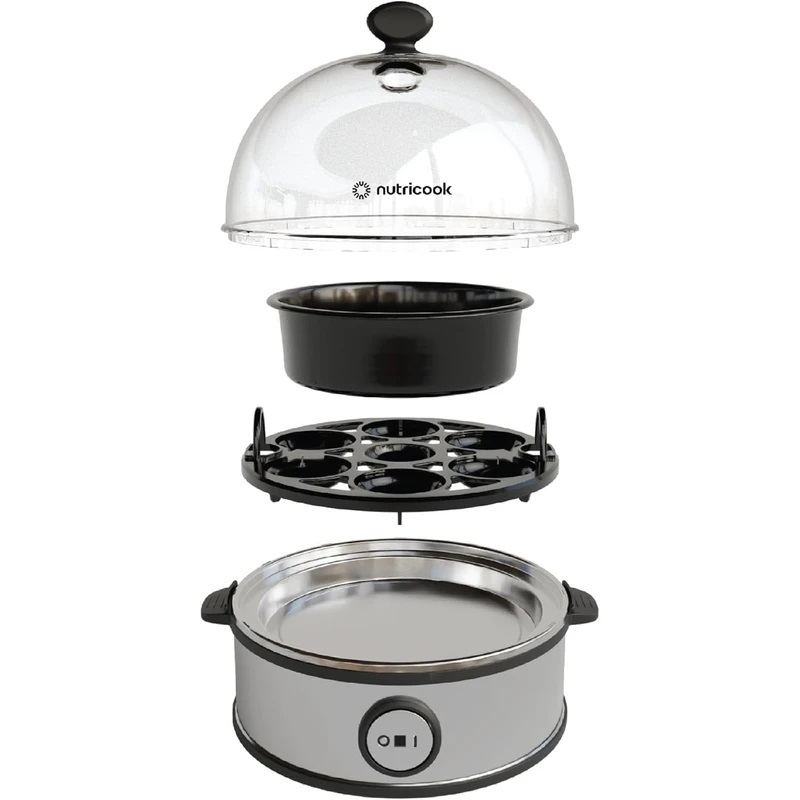 تخم مرغ پز نوتریکوک مدل NC-EC360 دستگاهی با طراحی ساده و زیبا به رنگ نقره ای، رومیزی، جمع و جور و سبک بوده که در عرض چند دقیقه تخم مرغ ها را می پزد. این تخم مرغ پز دارای 2 ظرف یکی با 7 جایگاه جهت آب پز کردن تخم مرغ و دیگری کاسه برای تهیه نیمرو و انواع املت می باشد. بدنه دستگاه از کیفیت ساخت خوبی برخوردار بوده از فلز و پلاستیک ساخته شده است.