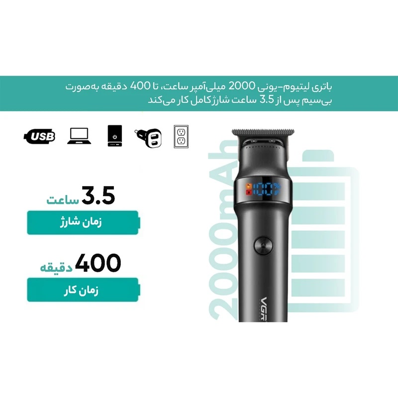ماشین اصلاح وی جی آر 987 دارای صفحه نمایش LED است که اطلاعات مهمی مانند: